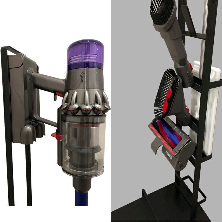 ※商品はスタンドのみで掃除機や小物(フローリングワイパー等の掃除用具)は付いていません 【対応機種】 ダイソンコードレスクリーナー、収納用ブラケットが付属している商品。
