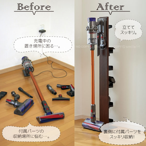 木目調 クリーナースタンド BKCSK-MBK /【送料無料】/ クリーナースタンド 掃除機 コードレス スタンド 充電 収納 棚 穴を開けない ダイソン シンプル シック インテリア おしゃれ 木目 木 賃貸 省スペース ブラック