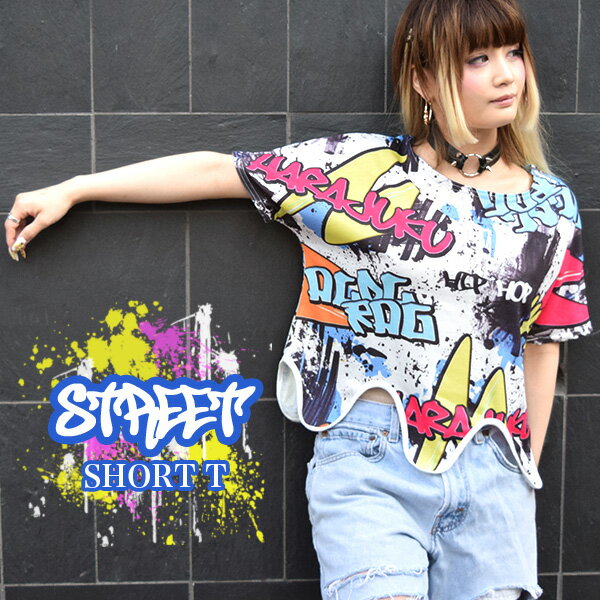 GRV ナミT Tシャツ ショート丈 変形 デザイン 半袖 レディース 原宿 原宿系 ファッション カラフル ストリート ダンス衣装 ヒップホップ ダンス 衣装 個性派 個性的 ガールズ キッズ かわいい ACDCRAG [メール便可]