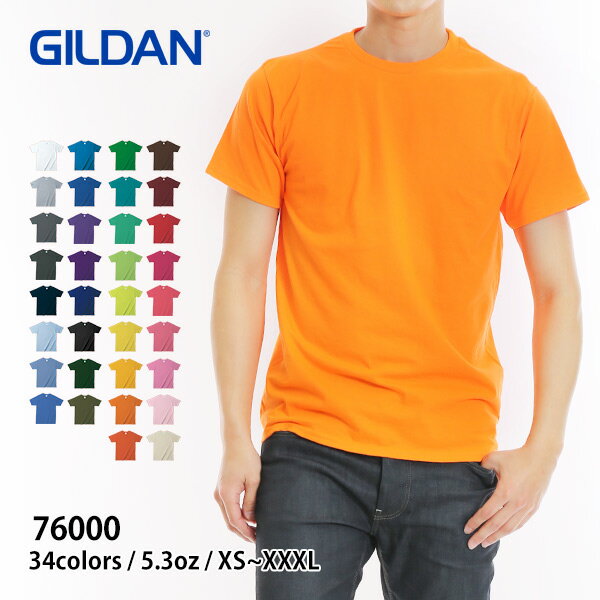 tシャツ 無地【GILDAN(ギルダン) | 5.3オンス アダルトTシャツ 暖色系 76000】tシャツ 無地 半袖 メンズ 男女兼用 夏 夏服 夏男 シンプル カラフル カラー スポーツ ダンス 白 黒 青 赤 イエロー ピンク など