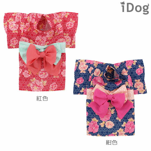 小さなドット柄とレトロな牡丹柄が華やかなiDogオリジナルプリントの素材を使った、ペット用浴衣です。