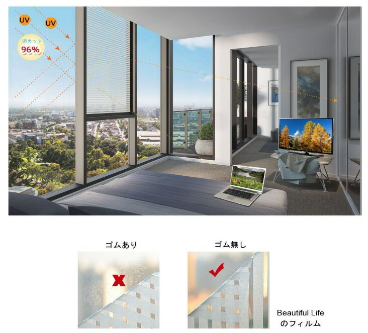 貼るだけで すりガラス レトロガラス 擦りガラス 磨りガラス 目隠し 遮光 断熱 結露防止 目隠しシート 断熱シート 結露防止シート 窓用フィルム Beautiful Life 窓 フィルム ストライプ めかくしシート 断熱 半透明 結露防止 UVカット 無接着剤 90CM×200CM