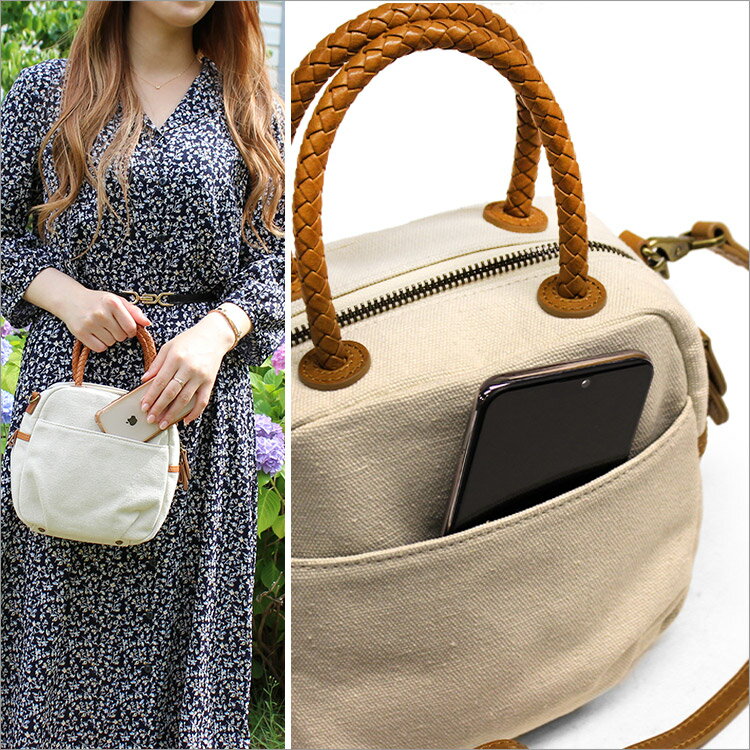 ショルダー付で斜め掛けにしても、軽い素材の為重くなりにくいミニボストン。