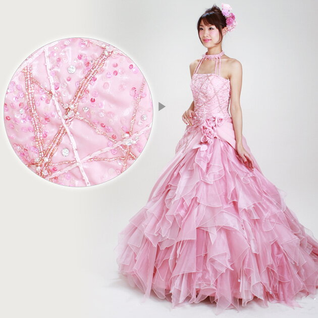 ・ティアラ/クラウン ・ヘッドドレス ・ボンネ ・カチューシャ【ウェディングドレス レンタル】 ■ カラー:ピンク ■ 素材:サテン、オーガンジー ■ デザイン:Aライン、チョーカー、花コサージュ ■ 洋服サイズ:7-11号 ■ バスト:〜94cm位 ■ ウエスト:〜70cm位 ■ ヒップ:〜98cm位 ※カラードレス・パニエ・手袋の3点セットでお届けいたします。